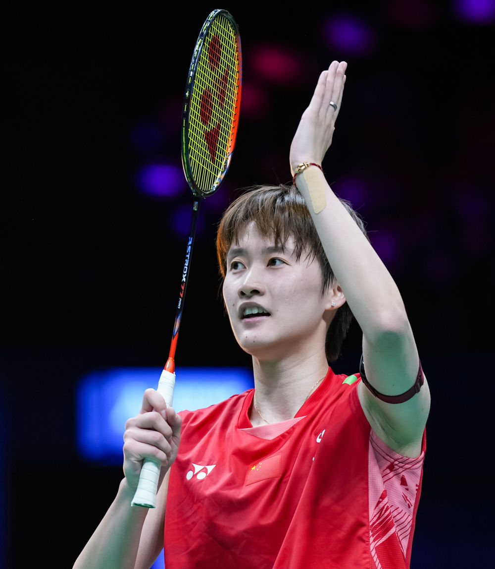 4月13日,陈雨菲在比赛后庆祝。新华社记者 孙非 摄