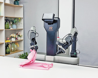 具身智能机器人自主操作折叠衣物。 资料图片 |