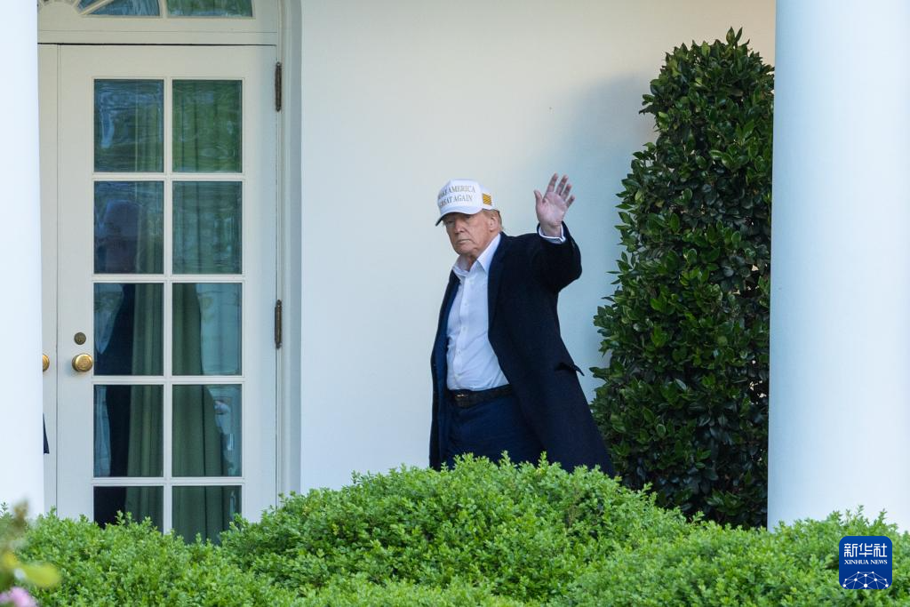 4月27日,在美国首都华盛顿,美国总统特朗普走下直升机。新华社记者 胡友松 摄