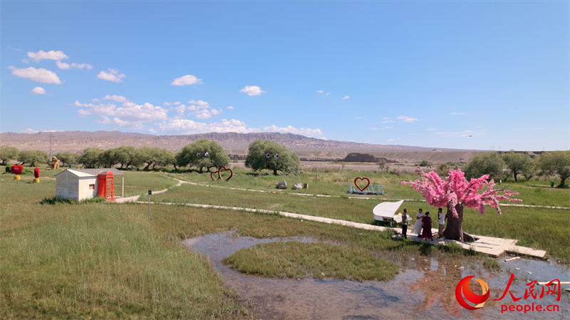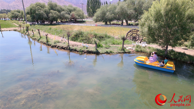 游客在独库第一村旅游景区游玩。人民网记者 唐宋摄