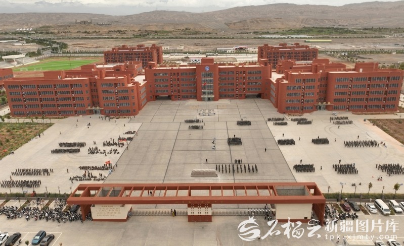 8月19日,吐鲁番市实验中学新校区迎来首批新生。图为新校区航拍图。 张明先摄