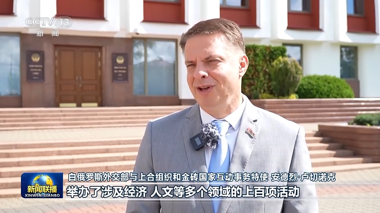 白俄罗斯外交部与上合组织和金砖国家互动事务特使 安德烈·卢切诺克:今年以来,中国作为上合组织轮值主席国,举办了涉及经济、人文等多个领域的上百项活动,此次峰会也是一次上合组织的成果总结。白俄罗斯作为“上合大家庭”的新成员,也将继续积极参与上合组织框架下的合作。
