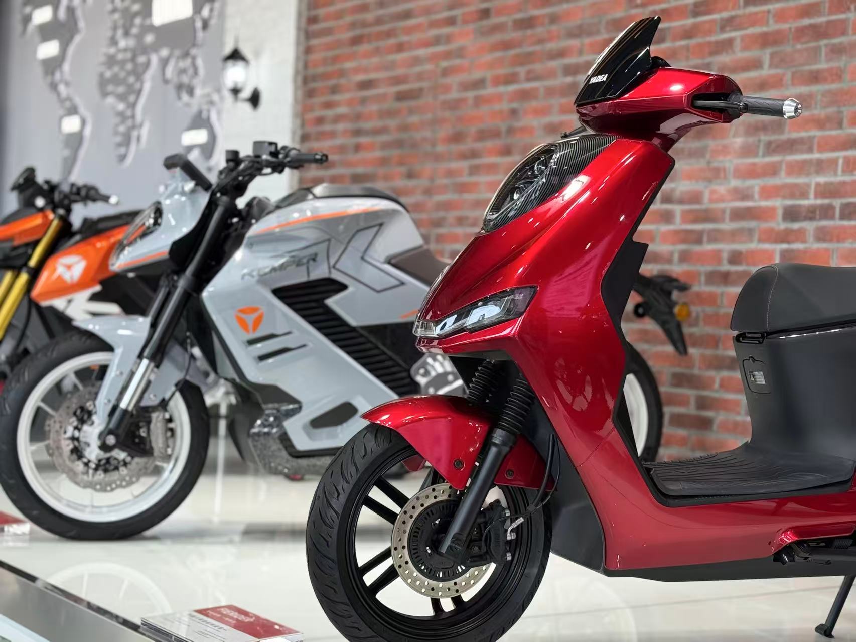 在雅迪展厅,款式多样、性能不同的多个系列产品叫人眼花缭乱,按需“花式”创研的成果具象化了——欧洲人身形高大、对速度要求高,性能强、有快充的跨骑式就很“搭”;东南亚国家城市通勤、家庭出行场景多,低速、加长座椅的踏板车就很“配”,好比是一辆两轮“SUV”。