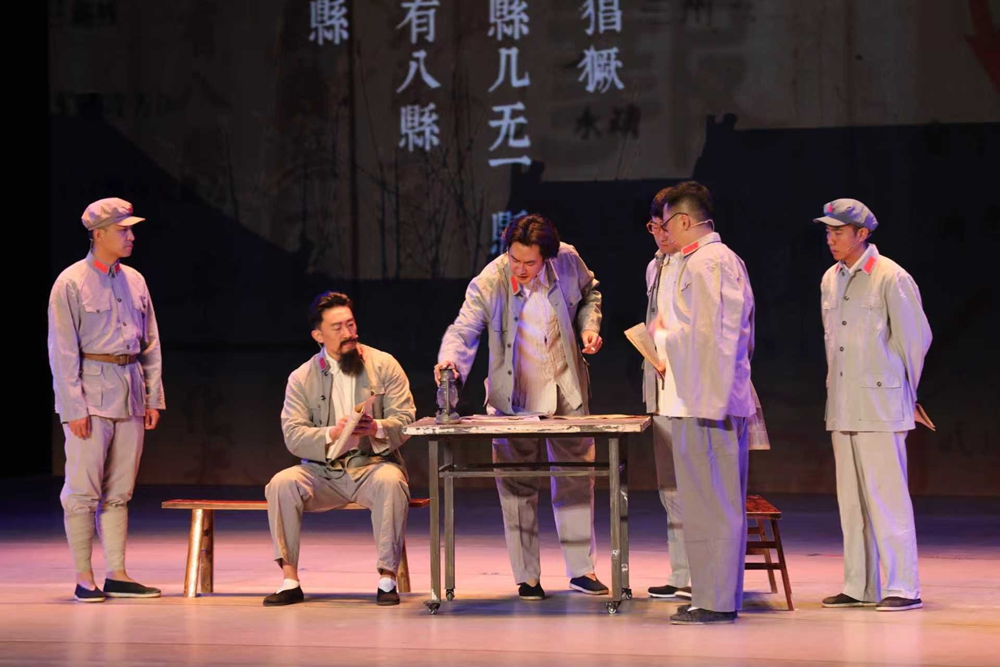 2025年9月17日,“红星照耀中国·‘两点一存’耀华夏”网络主题宣传活动在甘肃庆阳启动。图为大型红色革命题材话剧《哈达铺的灯光》演出剧照。主办方供图