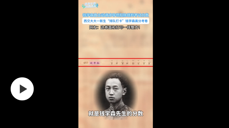 【青春华章·向西而歌】钱学森曾主动要求导师扣除错判考试分数!西交大新生“排队打卡”钱学森高分考卷