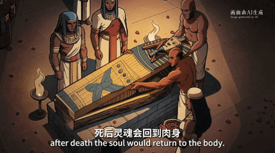 古埃及人相信死后灵魂会回到肉身,经过冥界的审判后将在来世实现永恒,但是灵魂必须要有“不朽的肉身”,才能完成从生到死到永生的循环。