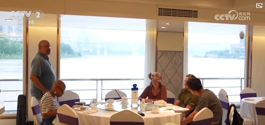早上六点半,一艘满载游客从湖北宜昌驶向重庆的长江游轮停靠在了重庆朝天门码头,记者在餐厅见到很多外籍游客正在在享受中西合璧的早餐。