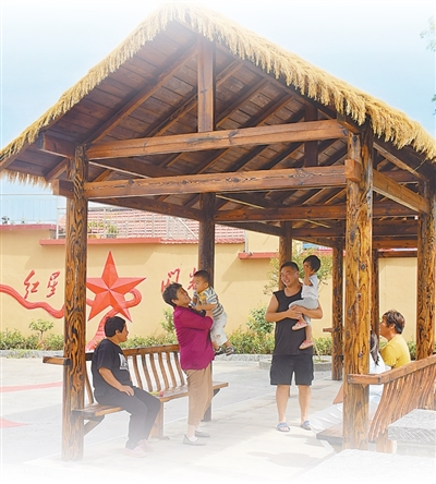 王庄村村民在茅草亭内乘凉。 袁君玉摄
