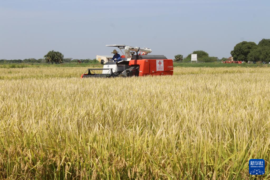 清晨,太阳升起,金色的光芒洒在乍得哈杰尔-拉米斯省杜吉亚区的米代金村。稻田里,金黄的稻穗随风摇曳,几台崭新的收割机犹如小船驶入金色海洋,轰鸣声与农民的欢声笑语交织。