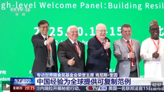 世界粮食奖基金会荣誉主席 肯尼思·奎因:就全球粮食安全而言,中国是最大、最重要的国家。中国的这套经验绝对提供了一个榜样,一个可以被全球各国复制的范例。我对当前全球形势的看法是,合作仍在继续,我相信可以通过农业实现和平,通过共同努力帮助饥饿的人们,为他们提供食物,人们可以跨越遥远的距离走到一起。