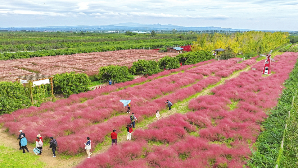 10月18日,秋意正浓,游客在临猗县三管镇银杏源家庭农场游玩。近年来,三管镇大力发展乡村旅游,吸引众多游客前来感受乡村魅力。(闫鑫摄)