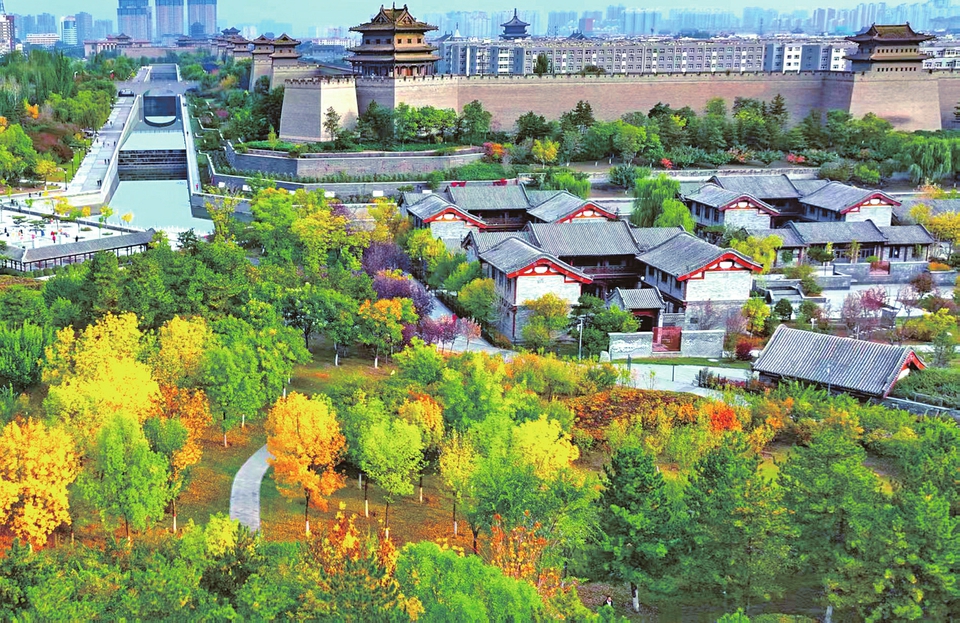 大同城墙带状公园迎来最佳赏秋季