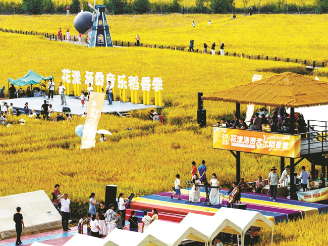 稻田之间,一场沉浸式视听盛宴同步上演。一名9岁小游客坦言:“这是我第一次体验农耕,终于知道农民伯伯有多辛苦。”