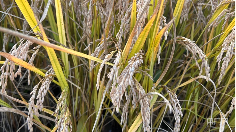 一串串稻穗将水稻压弯了腰(央广网记者 苏睿楠 摄)