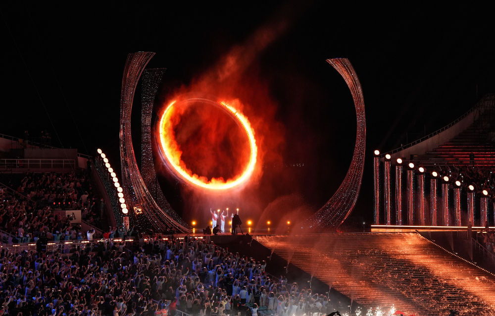 郎昆介绍,开幕式在空间叙事、艺术表达等方面都体现了三地文化交融。主舞台直观呈现“同心圆”造型,环形舞台周边是广阔的水面,运用前沿的“虚实结合”技术,让珠江、维多利亚港、伶仃洋的水波在场地中交汇奔流。这不仅是地理水系的相连,更是三地同源共流的文化血脉与手足亲情的象征。