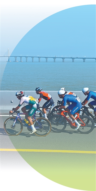 11月8日,一场跨境公路自行车赛紧张举行,选手们在赛道上疾驰,一路不停车穿越粤港澳三地。