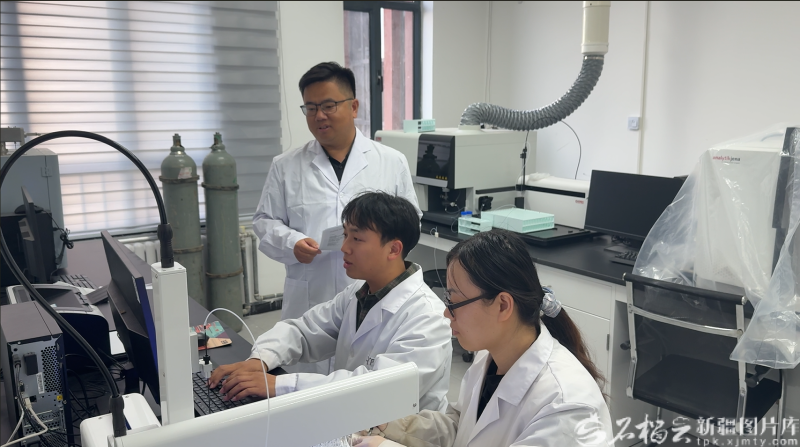 近日,中国农业科学院西部农业研究中心棉花布局与低碳生产技术创新团队首席科学家王占彪(左一)团队人员在进行室内试验。图/受访者提供