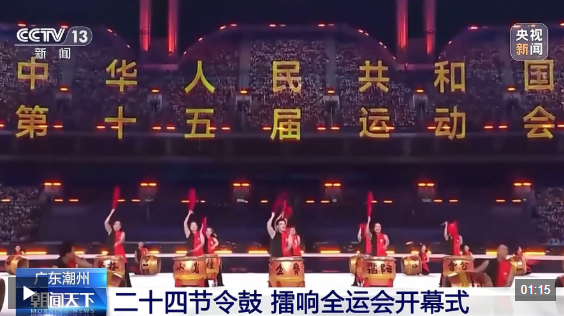 第十五届全运会赛事精彩纷呈,充满岭南风情与大湾区特色的文化元素同样大放异彩。在开幕式暖场环节中,一段融合传统非遗与现代舞美的二十四节令鼓表演震撼全场,随着镜头传遍全国,潮州独特的文化魅力也深入人心。