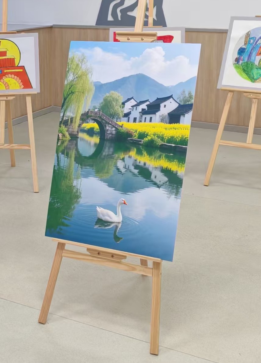 走到学校一处作品展区时,记者看到了一幅由孤独症学生用AI(人工智能)制作的画。胡乐告诉记者,现在很多学生都能熟练运用AI制作出一幅画、一首歌表达内心的想法。通过这种方式,他们不仅有了自己的“代表作”,还能让家长和老师更了解他们,成为与外界交流的一种独特手段。