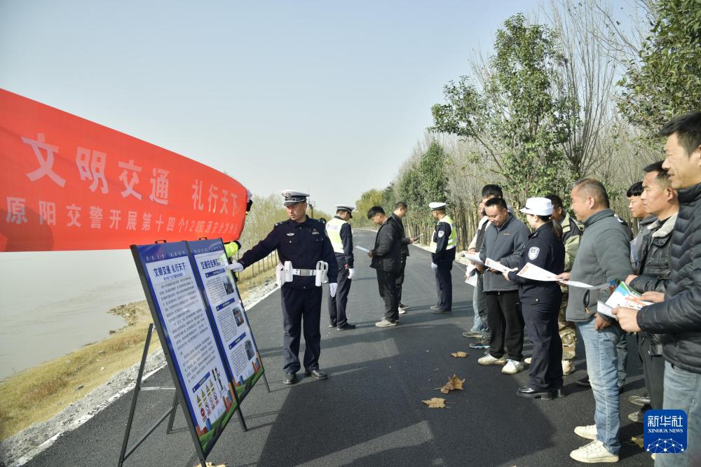 12月1日,新乡市原阳县公安局交警大队在黄河岸边开展交通安全案例宣讲活动。胡靖雨 摄