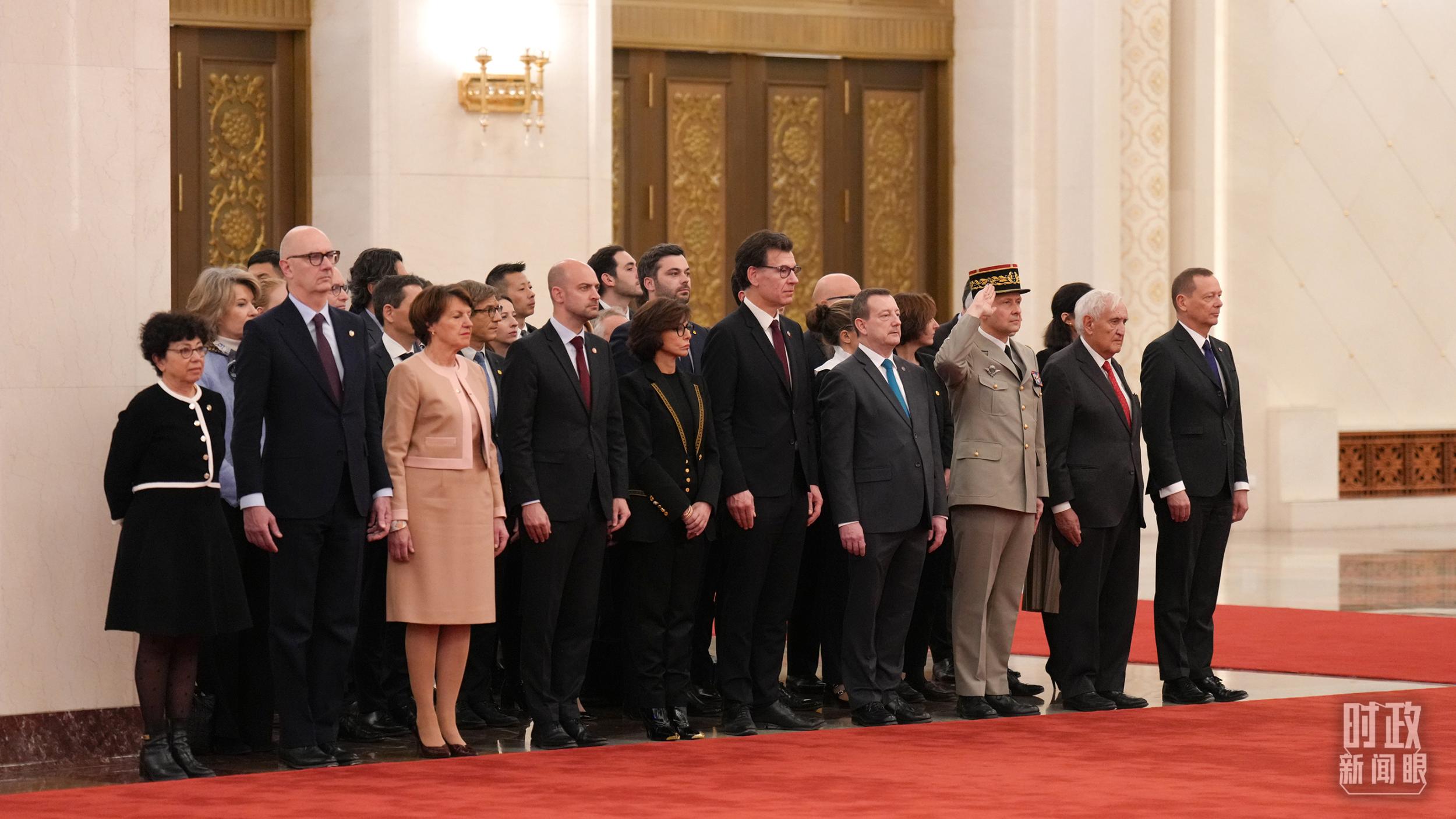 欢迎仪式上的法方代表团。(总台记者李晋拍摄)