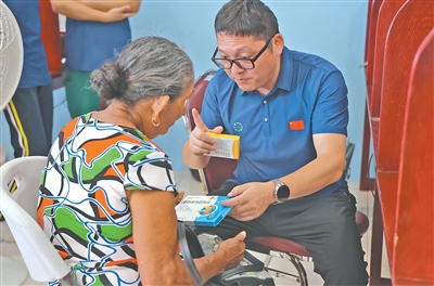 许多村民早早聚集在村活动中心,等待医疗队的到来。医疗队成员一下车便开始工作——不仅为村民提供血压血糖检测、健康咨询和慢病管理等服务,还向有需要的村民发放常备药品。