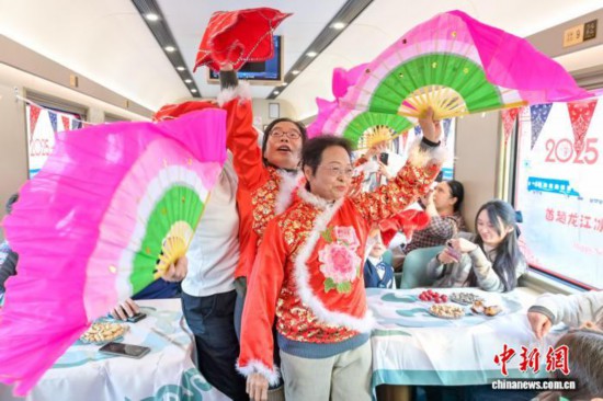 该趟列车游客平均年龄60岁,最大77岁,铁路部门投用适老化改造车体,设有书吧、棋牌室、康健区等功能车厢,包厢及卫生间配备紧急呼叫装置和急救设备。餐车提供东北特色美食和“适老健康套餐”,实现休憩、休闲、餐饮一体化服务。