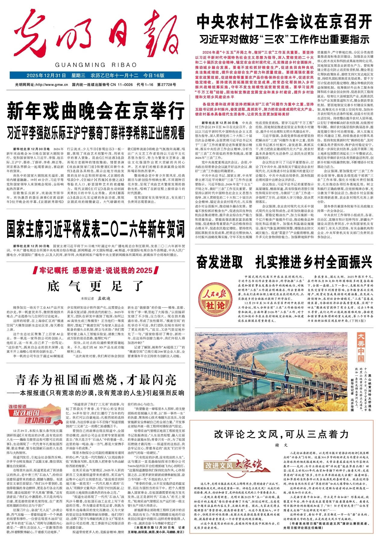12月29日,本报头版头条刊发长篇调研报道《只有荒凉的沙漠,没有荒凉的人生——瀚海戈壁里这些可歌可泣的故事》,生动展现了一代代青年扎根祖国西陲、敬业奉献、誓为祖国献石油的人生选择与火热情怀。