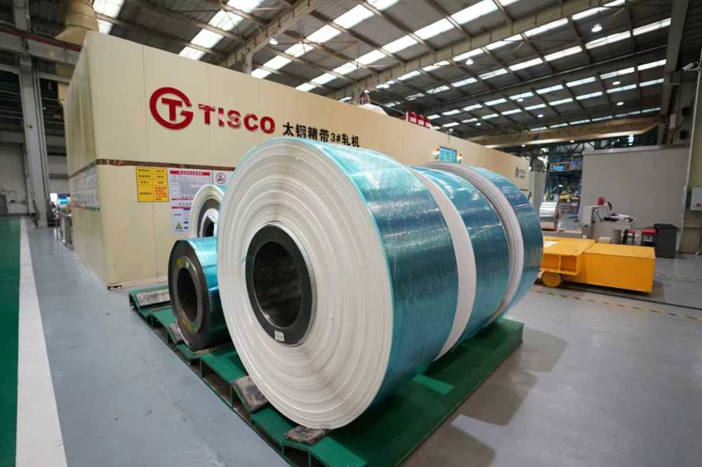 中国宝武山西太钢不锈钢精密带钢有限公司车间一角。新华社记者 詹彦 摄