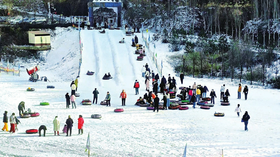 1月5日,晋中市太谷区田园东谷温泉康养小镇首届冰雪节启动,游客们在园内尽情游玩,畅享冰雪世界的乐趣。(孙泰雁 摄)