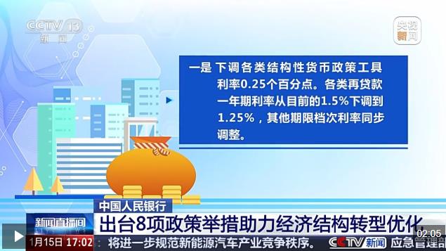 一是下调各类结构性货币政策工具利率0.25个百分点。各类再贷款一年期利率从目前的1.5%下调到1.25%,其他期限档次利率同步调整。