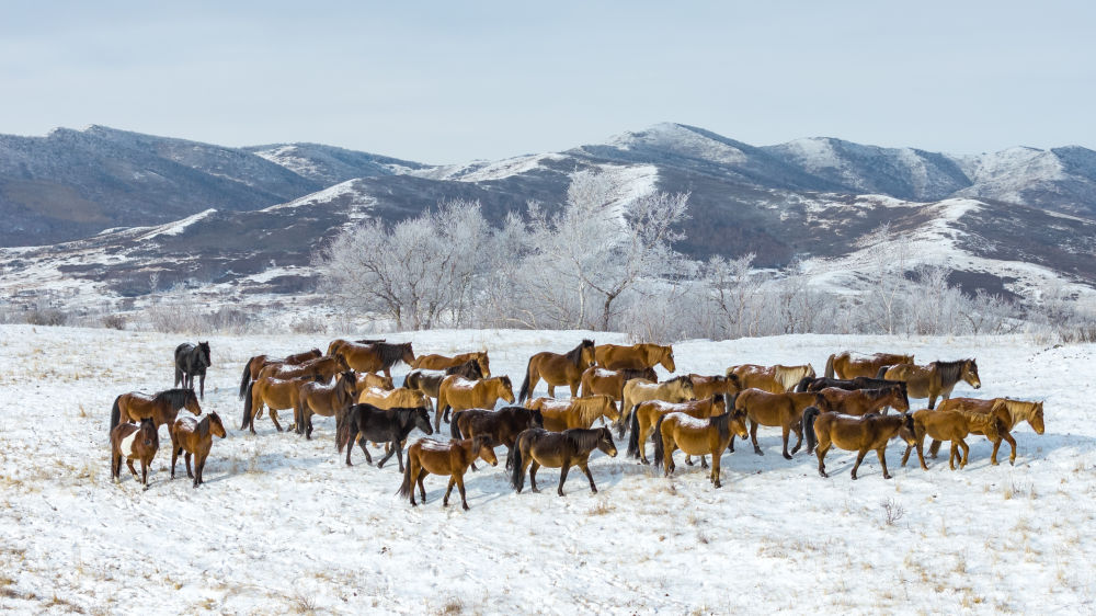近日,在银装素裹的内蒙古克什克腾旗