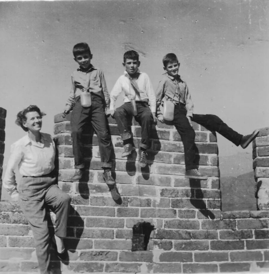 1963年,伊莎白·柯鲁克与儿子柯鸿冈、柯马凯、柯鲁在八达岭长城合影。来源:受访者供图