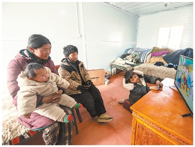 就在前一天,次仁普尺一家已经住进了温暖的板房。几个弟弟正挤在电视机前争抢遥控器,吵着要看各自喜欢的动画片;妈妈巴桑则在一旁细心整理着被褥和衣物,将一件件物品归置妥当。