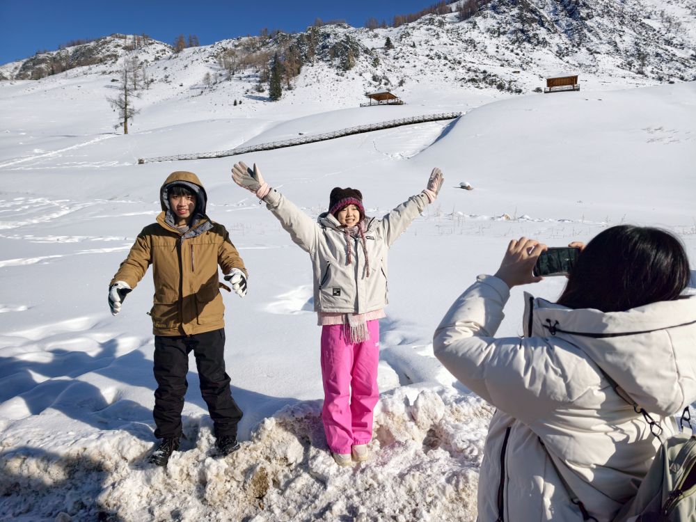 1月30日,台湾青年在新疆喀纳斯景区拍照。新华社记者 贺小童 摄