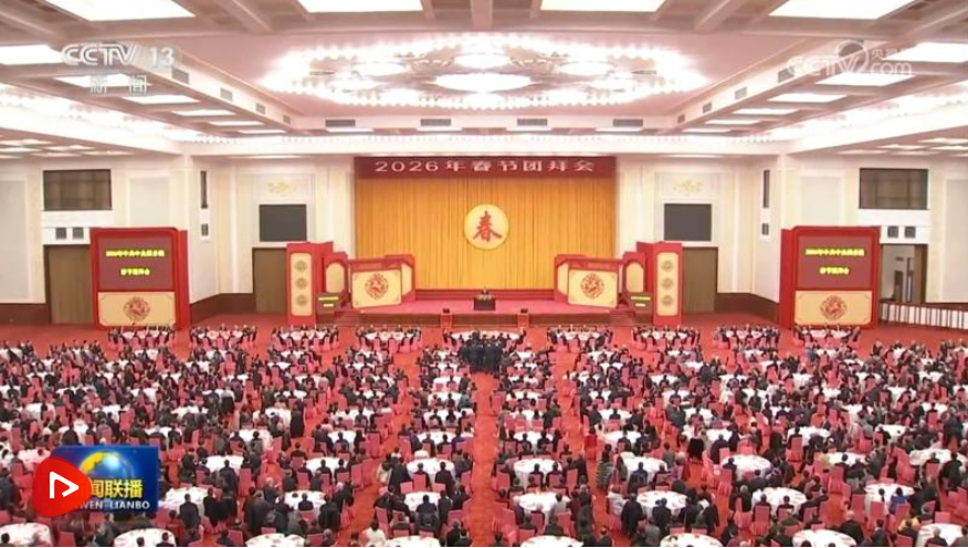 中共中央、国务院14日上午在人民大会堂举行2026年春节团拜会。中共中央总书记、国家主席、中央军委主席习近平发表讲话,代表党中央和国务院,向全国各族人民,向香港特别行政区同胞、澳门特别行政区同胞、台湾同胞和海外侨胞拜年。