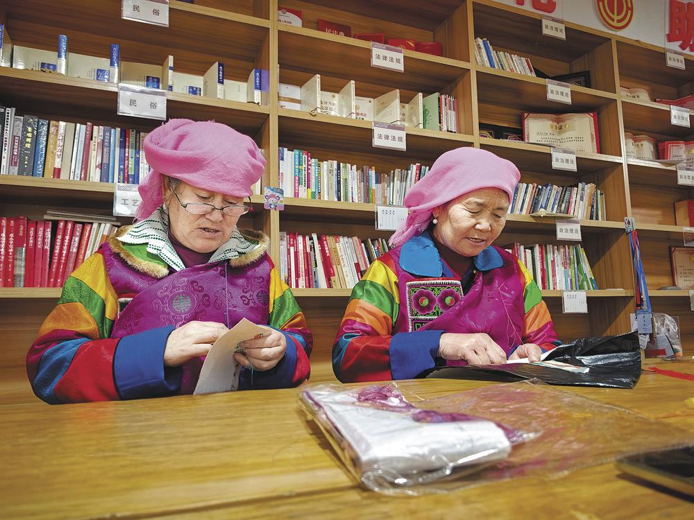 “搬到新村后,村里建了盘绣园,邀请我们这些会盘绣的妇女来做工,还请老师指导绣法、帮我们找销路,让我们靠着老手艺就能在家门口挣钱。如今每天来盘绣园,和老姐妹们聊聊天、做针线活,既不耽误照顾家里,又能增收,日子过得格外舒心。”李旦见索说。她告诉记者,去年一年就靠盘绣挣了一万多块钱,不仅改善了家里生活,也多了份底气,“以前花钱精打细算,现在靠自己手艺挣钱,想买点啥就买啥,心里特别踏实。”