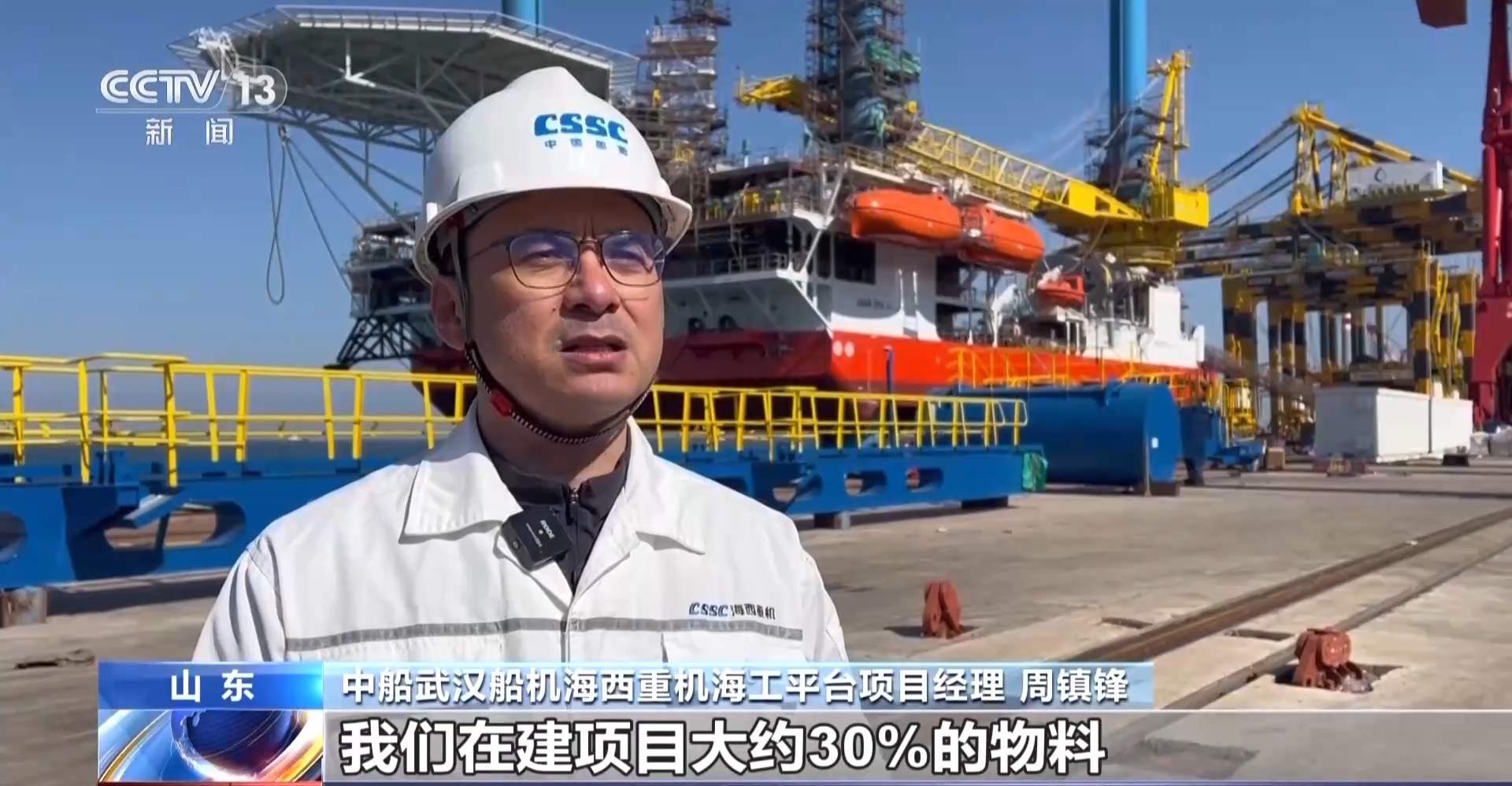 中船武汉船机海西重机海工平台项目经理 周镇锋:我们在建项目大约30%的物料均由本地集群供应,采购半径有效缩短,物流成本大幅降低。目前,我们在建平台及港机设备100余台,订单交付日期已经排到2027年。