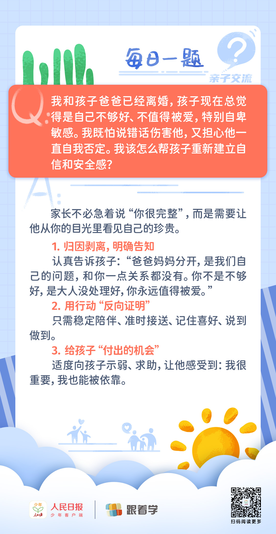 每日一题丨孩子因父母离异产生自我否定的想法,该怎么引导?