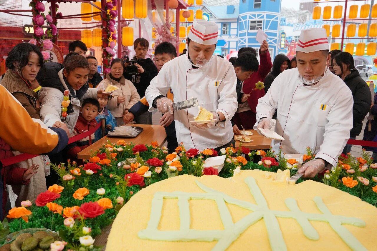 长沙世界之窗日前推出百人春宴,直径一米二的巨型春饼吸引游客排队品尝。景区工作人员介绍,3月,景区将深度融合国风浪漫与春日食趣,打造集沉浸式十二花神演艺、春日美食于一体的特色文旅活动。