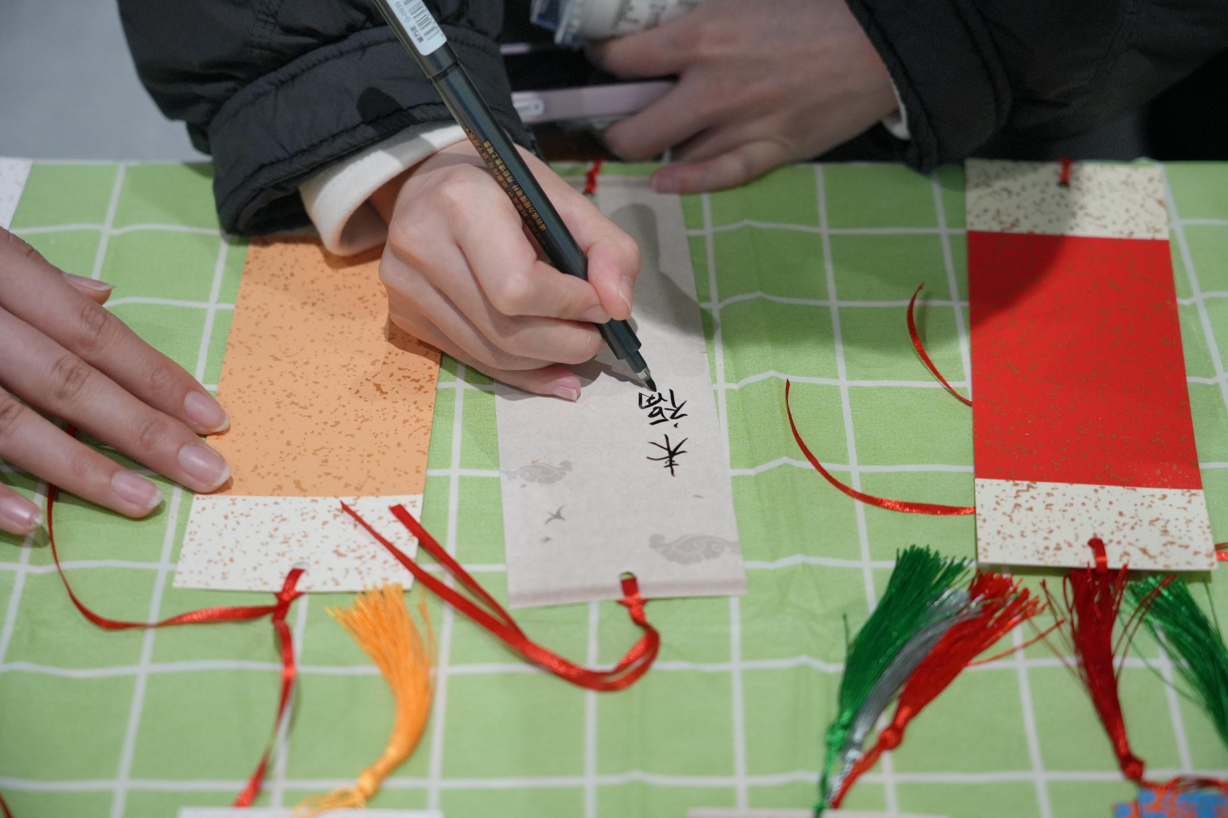 在姓氏书签制作区,旅客们找到写有自家姓氏渊源的竹签后,挑选出心仪的空白书签,一笔一画将姓氏誊写其上。不多时,一张张承载家族记忆的个性书签便制作完成。现场,工作人员还向旅客发放国风贴纸、定制书签与国风伴手礼等小礼物,候车大厅里弥漫着阵阵欢声笑语,文化温情在旅途中悄然流淌。