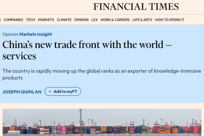 全球媒体聚焦 | 英媒:中国外贸正构筑新优势 知识密集型服务出口加快增长