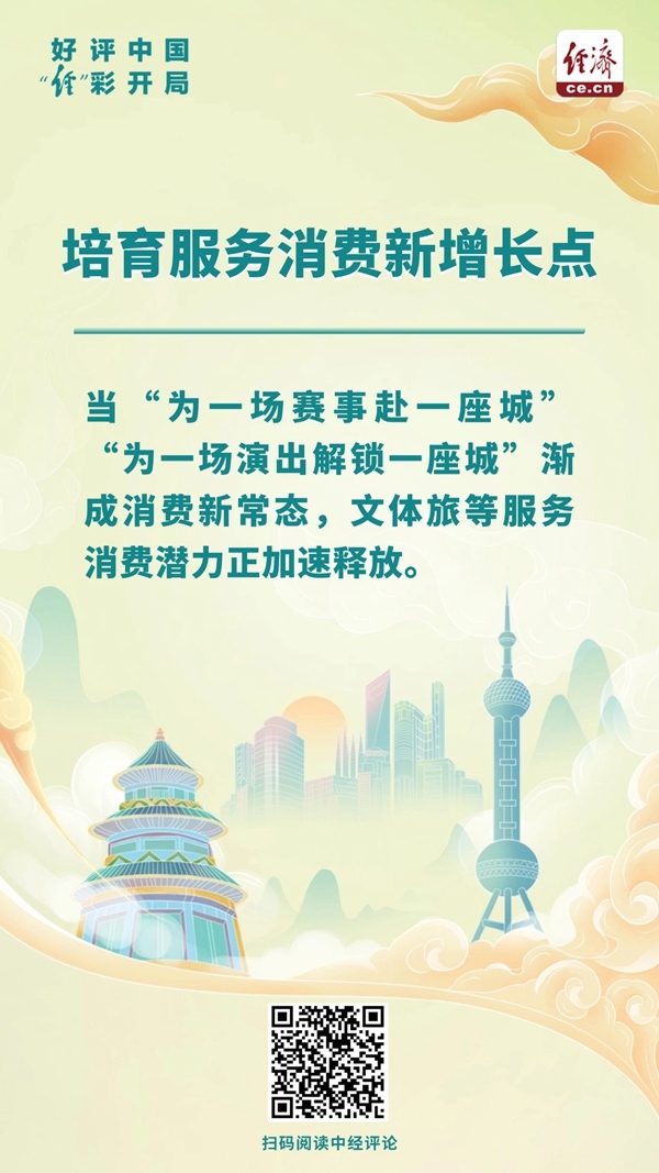 “十五五”规划纲要强调,“加快培育服务消费新增长点”,为进一步释放消费潜能、塑造发展新优势指明方向。国务院办公厅近期印发的《加快培育服务消费新增长点工作方案》,将演出服务、体育赛事服务、情绪式体验式服务列为重点培育领域,也是看中了服务消费既能引导居民生活品质升级,又能高效撬动供需循环的双重价值。