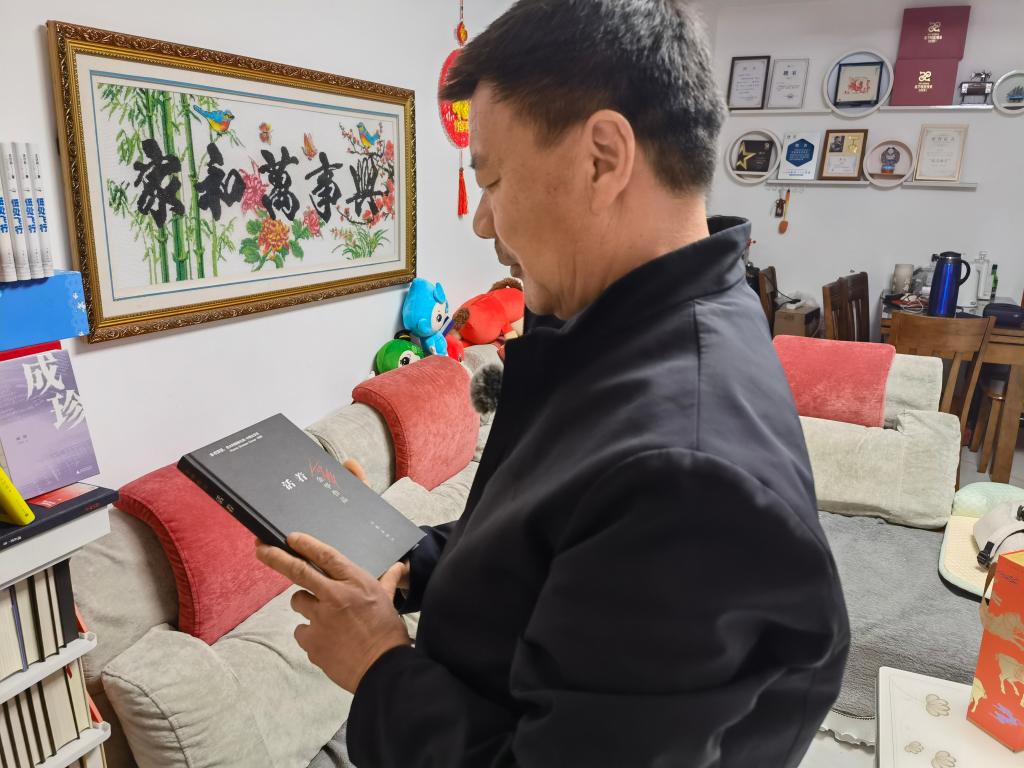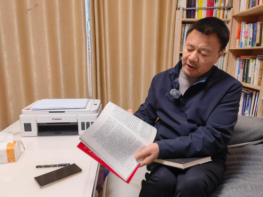 受访过程中,王计兵向记者展示最近读的书。 新华社记者 邱冰清 摄