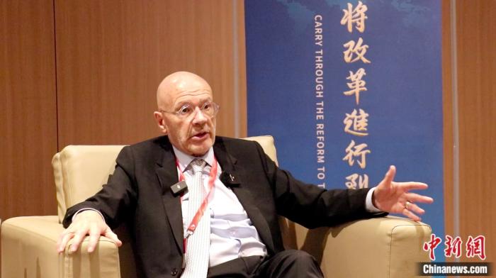 12月4日,清华大学客座教授、英国剑桥大学政治和国际研究系前高级研究员马丁·雅克(Martin Jacques)接受中新网专访。(中新网 黄方 摄)