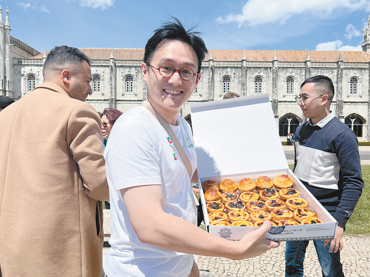 戴显扬今年年初与招商局赴葡萄牙,手上拿着正宗的葡式蛋挞