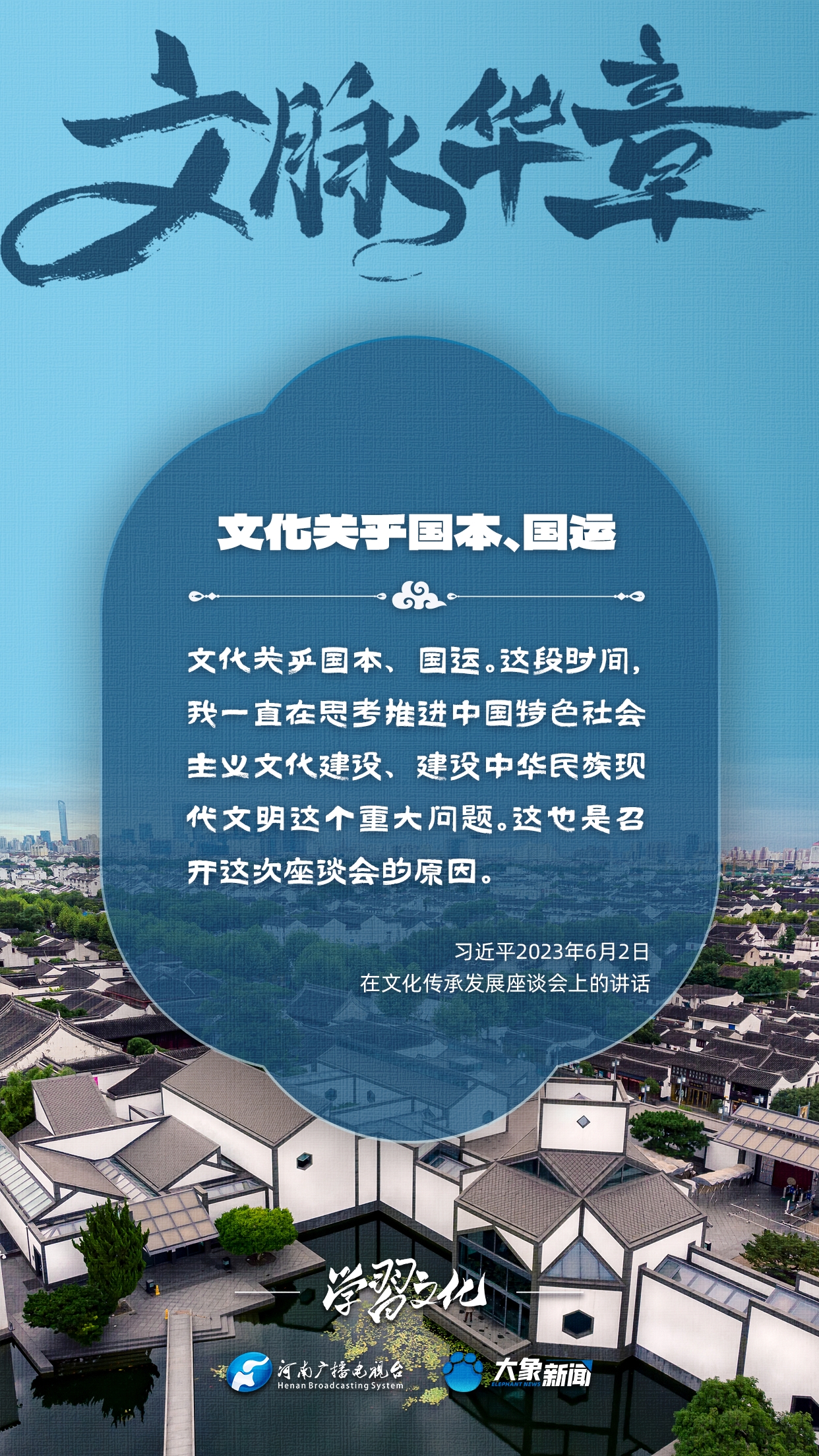 习近平总书记高度重视文化之于国家、之于民族的重大意义,强调:文化是一个国家、一个民族的灵魂。文化兴国运兴,文化强民族强。没有高度的文化自信,没有文化的繁荣兴盛,就没有中华民族伟大复兴。大象新闻梳理了习近平总书记的系列重要论述,我们一起学习。