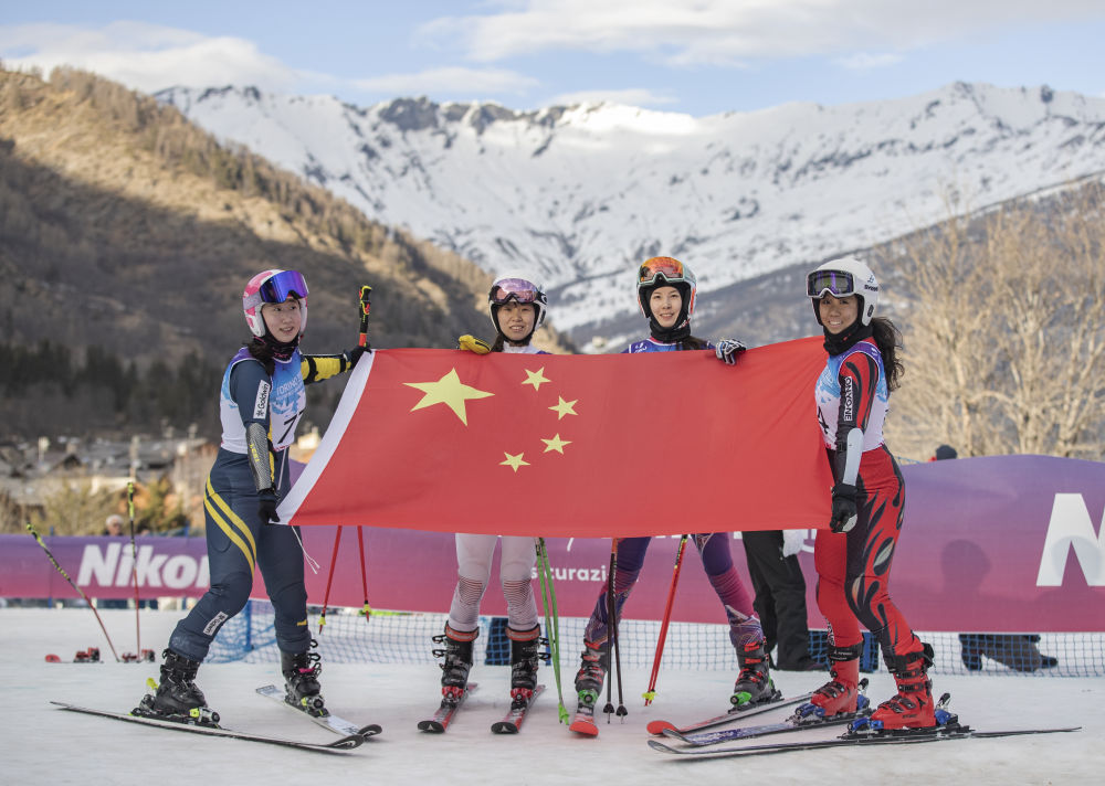 在意法边境的巴多内基亚小镇,胡枕冰和陈洁琪18日在2025年世界大学生冬季运动会高山滑雪女子大回转比赛中,顺利完成两轮比赛。雪山脚下,她们小心翼翼地舒展开五星红旗,美滋滋地享受梦寐以求的时刻。