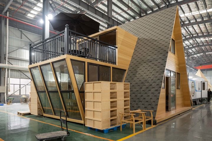 这是2024年12月10日在位于永州市双牌县竹木产业智能科技园的湖南永竹竹业科技有限公司拍摄的钢竹结构民宿外景。新华每日电讯记者陈思汗摄