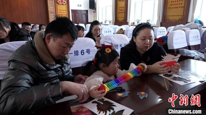 家长带着孩子进行“国潮舞龙”手工制作。 王婷 摄